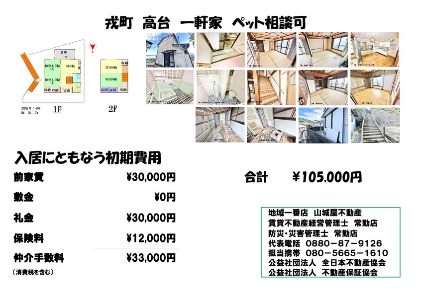 戎町 高台 一軒家 ペット相談可 3万円 売買も可