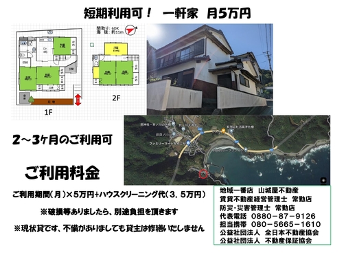 市場町一軒家 8月上旬より入居可 短期賃貸利用OK 契約済