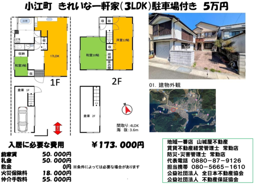 小江町キレイな1件家(3LDK)駐車場付き 5万円